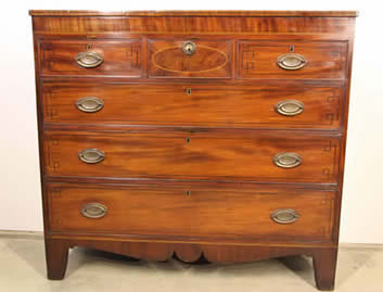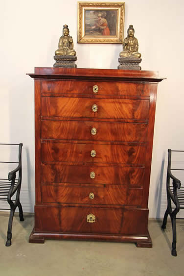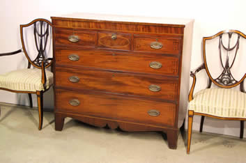 Antique Gustavian Swedish 18th century chest of drawers in mahogany with brass mounts & inlay Stockholm circa 1780