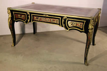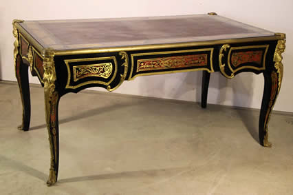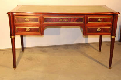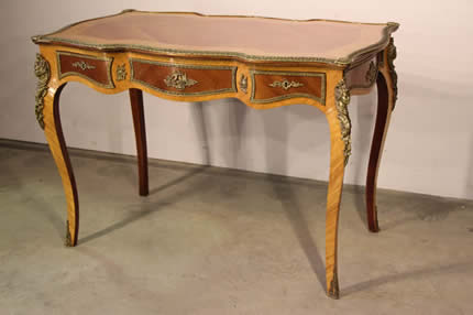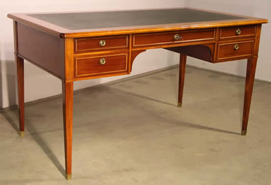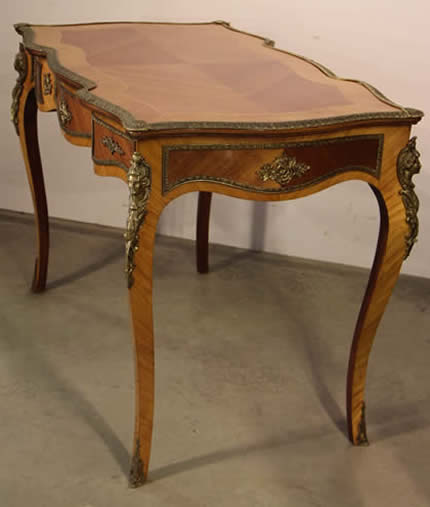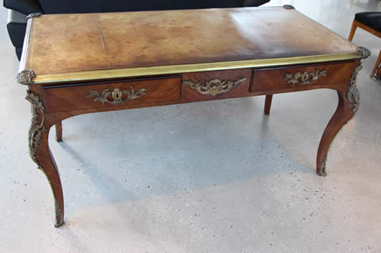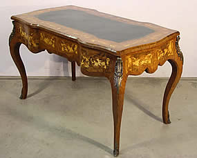 | Title Impressive three drawer marquetryl writing desk Bureau Plat leather top |