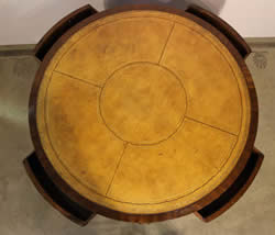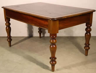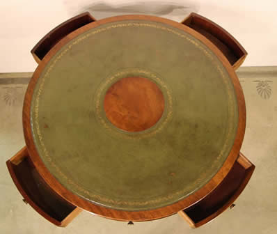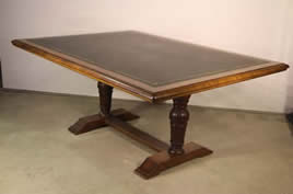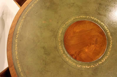 antique library table . The cedar top surrounds an ornate green tooled leather