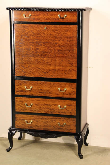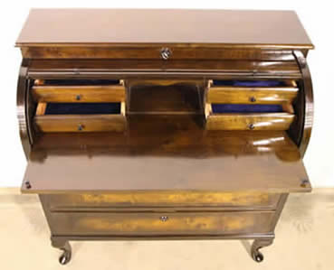 revival bureau chest in flame mahogany. The cylinder top rotates out of the way