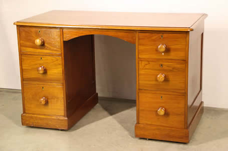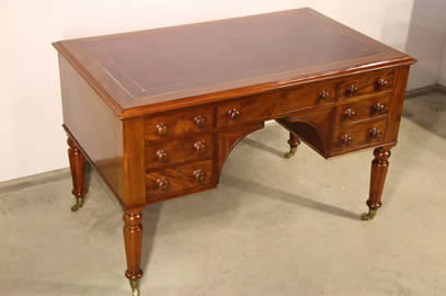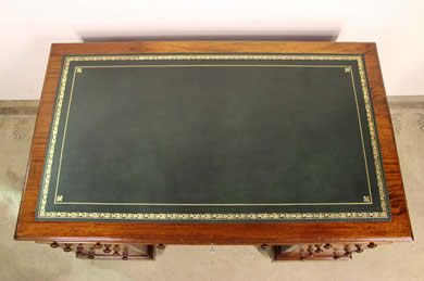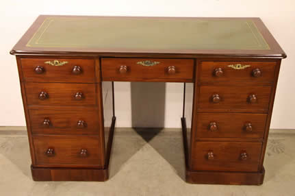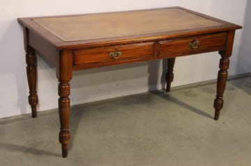 | Title Victorian two drawer desk with original gold leaf tooled learther top |