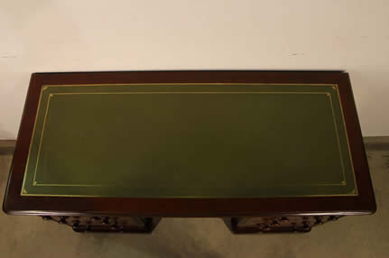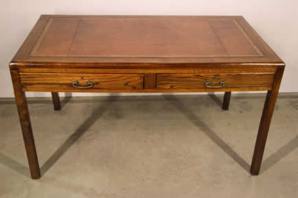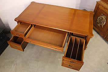Scholar's desk. The beautifully polished top above two brass handles drawers