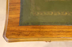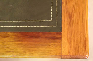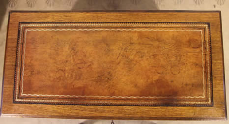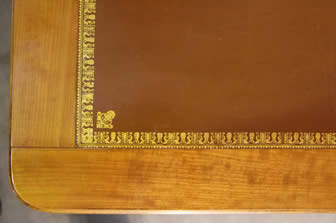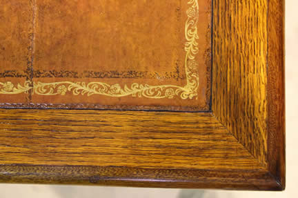 leather top with gilt toolingsurrounded by blond wood frame. The apron with