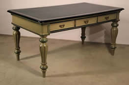Biedermeier style writing table of large proportions. The original olive green
