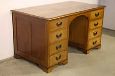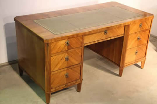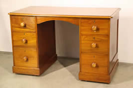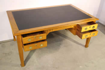 Empire style solid blonde wood flat top desk with four drawers including a double