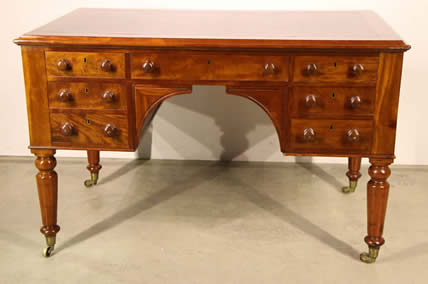 or William IV desk in teak with rosewood trim and ebony inlay. Three rosewood