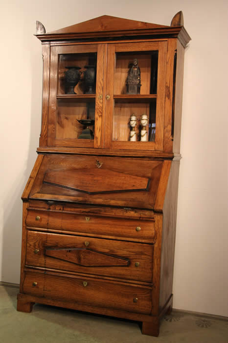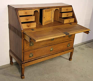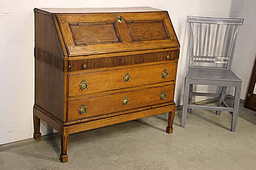 Gustavian fall front bureau desk on chest with fitted interior in solid oak |