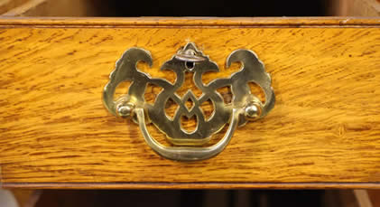 campaign handles. Each drawer is dovetailed and works smoothly.