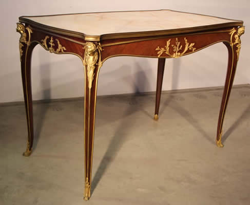 ornate design and bronze ormolu mounted in the manner the rococo period .