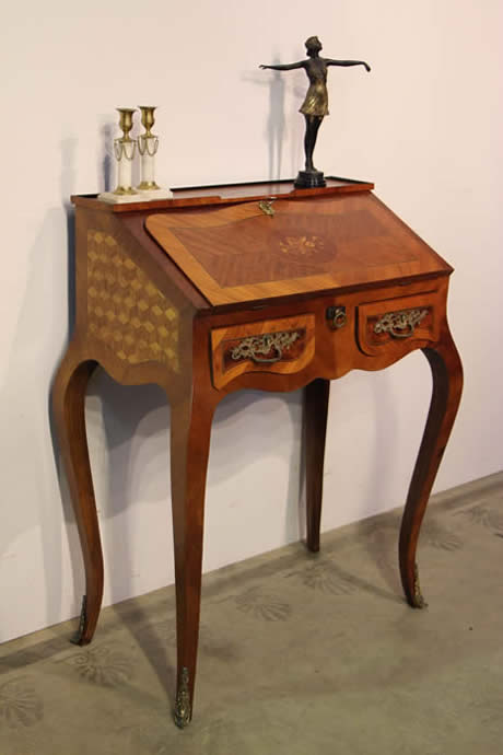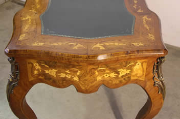 writing desk in the French Louis XV manner. Superbly inlaid in fruitwoods with