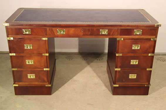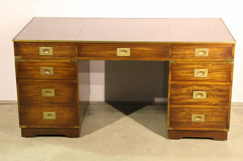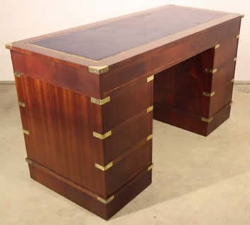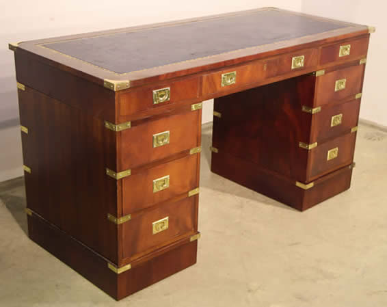 Impressive Captains campaign desk in mahogany with brass handles |
