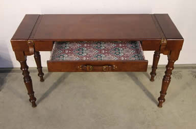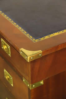 campaign desk . The three drawer top with black leather inserts and brass