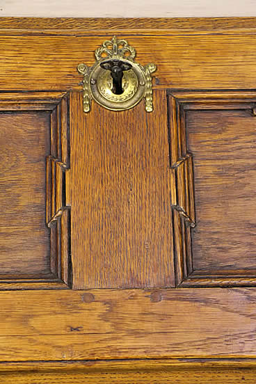 and shaped fronts flank the central drawer complete with lock and key and all