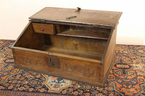 example is a 20th century made desk of an original early 1740's desk, no doubt