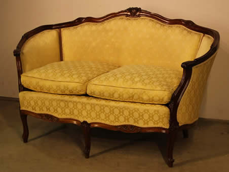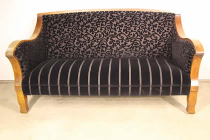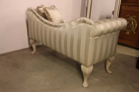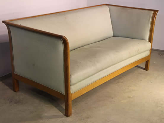 a wall. This sofa however has had the back upholstered in the same fabric to match the front albeit with slight sun bleaching.