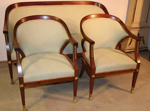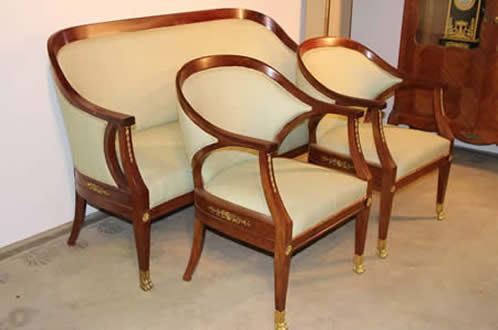 The elegant curved edges join the solid sturdy armrests. These are further enhanced by neoclassical column fronts in solid Karelian birch.