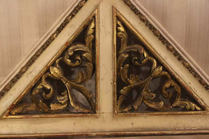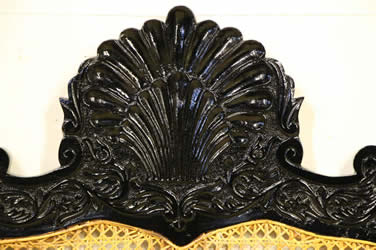 The architectural design with rasied arched pediment and ebonized panel to back.
