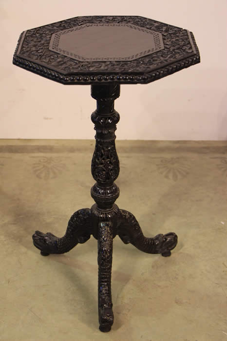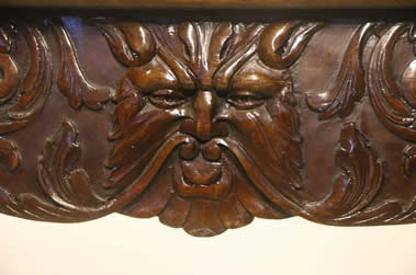 | Title Antique marquetry top Swiss wine table ornate naturalistic carved wood base and scalloped edge | |