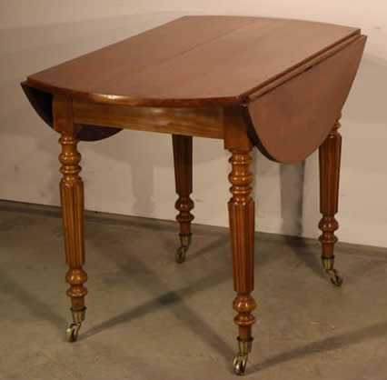 | Title English solid satinwood oval Sutherland centre table with drop sides and butterfly hinge support legs 1860 | |