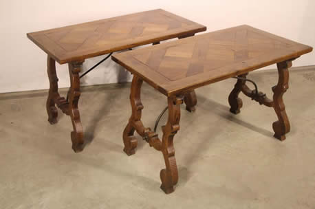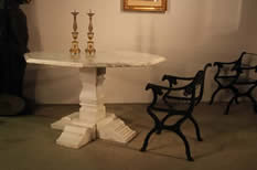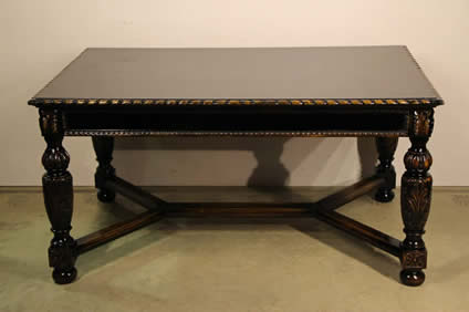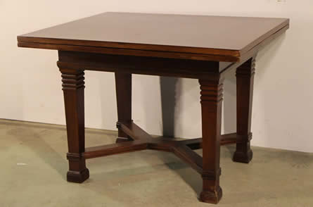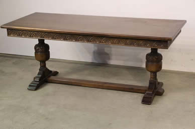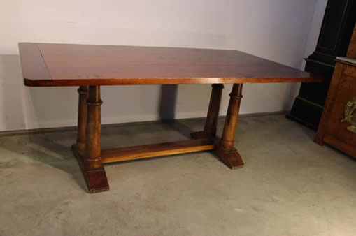 | Title Solid wood Refectory table hallway console table parquetry top raised on Gothic four sided column | |