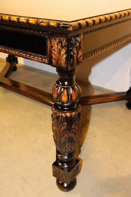 Ideal as use for a dining table, writing desk or centre table. A golden polished patina is a value point. Nice and sturdy construction and smooth operation of drawer glides.