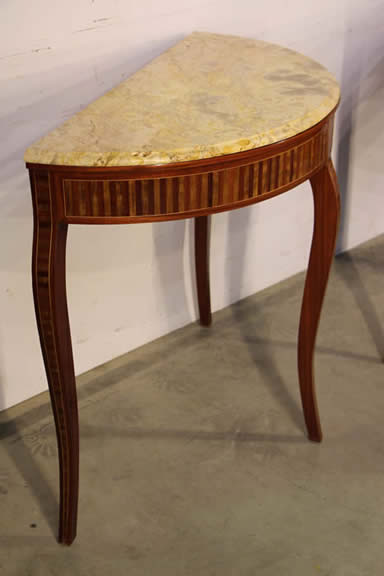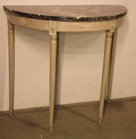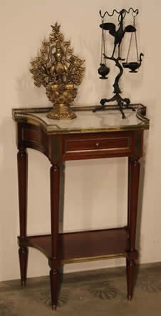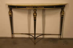 | Title Antique flame mahogany and burl walnut French Empire console table with grey marble top | |