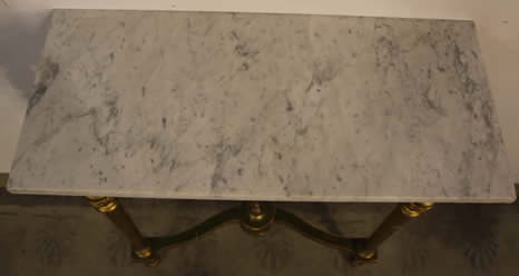| Title Carved mahogany English late Regency console table raised on carved legs with carrara marble top | |