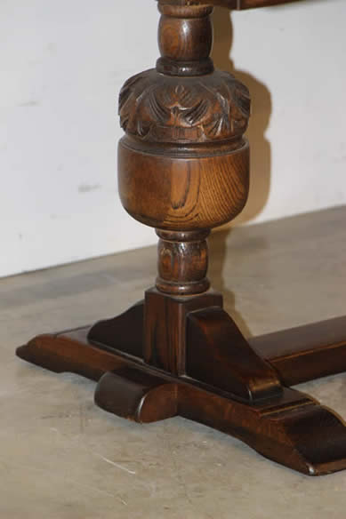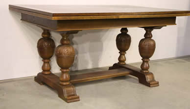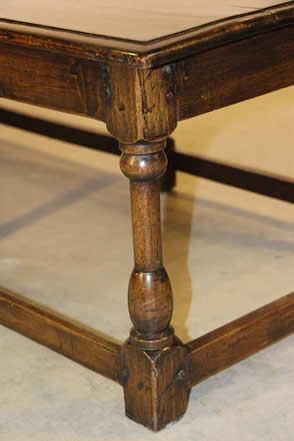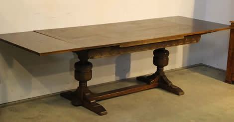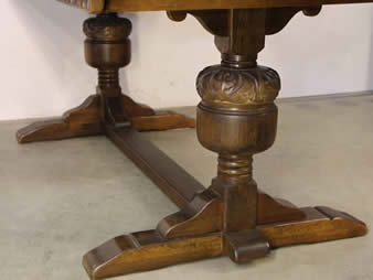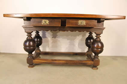 Title 16th century oak Refectory table with solid 2 plank top and ornate balluster pedestals European |