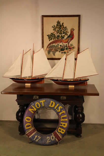 | Title Antique blonde Art Deco sofa table writing desk raised on turned column to platform base Sweden 1920 | |