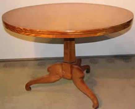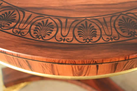 | Title Swedish blonde birch Empire centre table on carved column to platform base and ebonised feet 1910 | |