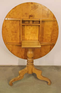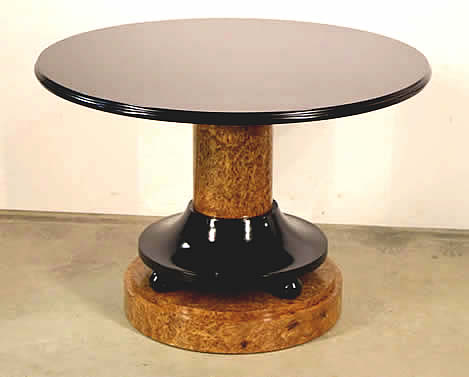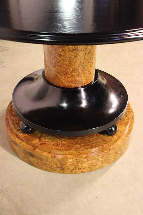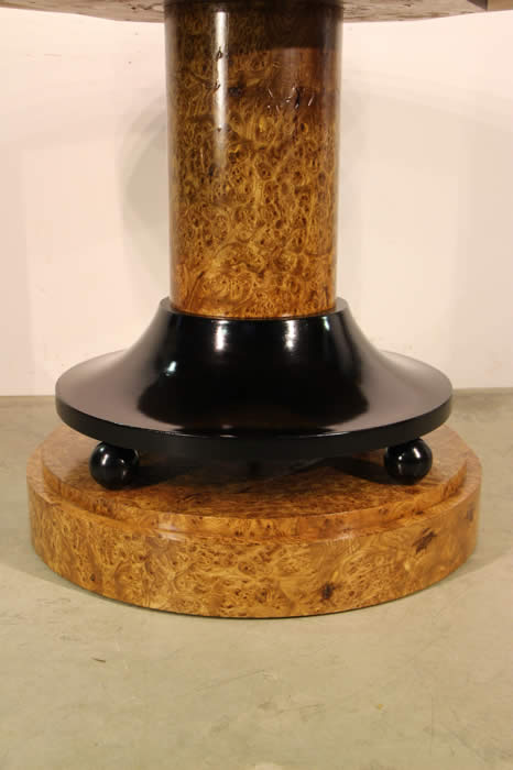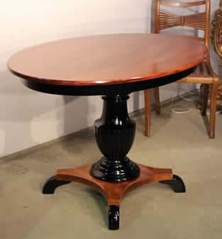 Description Birch table 4800 Gorgeous Swedish blonde birch Empire centre table on carved column to platform base and ebonised feet 1910. A precursor to the later Art Deco era this beautiful Biedermeier revival furniture is highly sought after for its clean minimalist lines and use of light coloured timbers with contrasting ebonised details. Timless elegance..