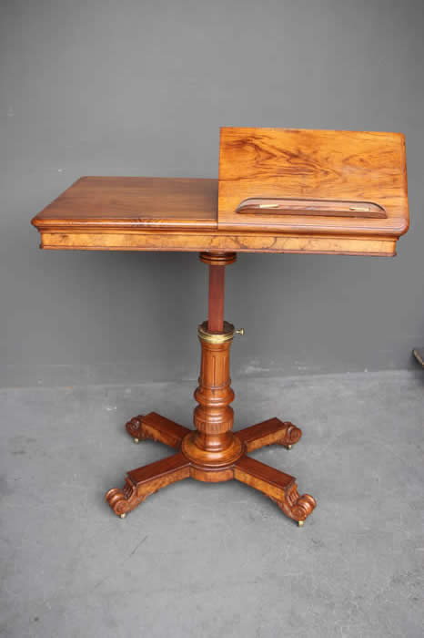 Antique Regency Reading Table with sliding top book rests tilt mechanism and ratched height adjustable 1825