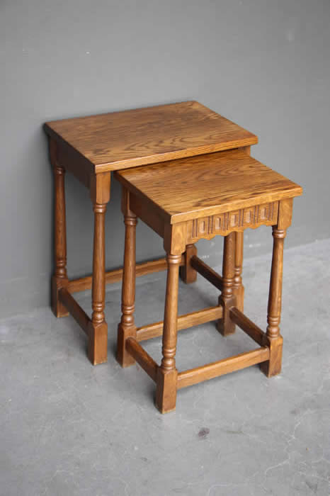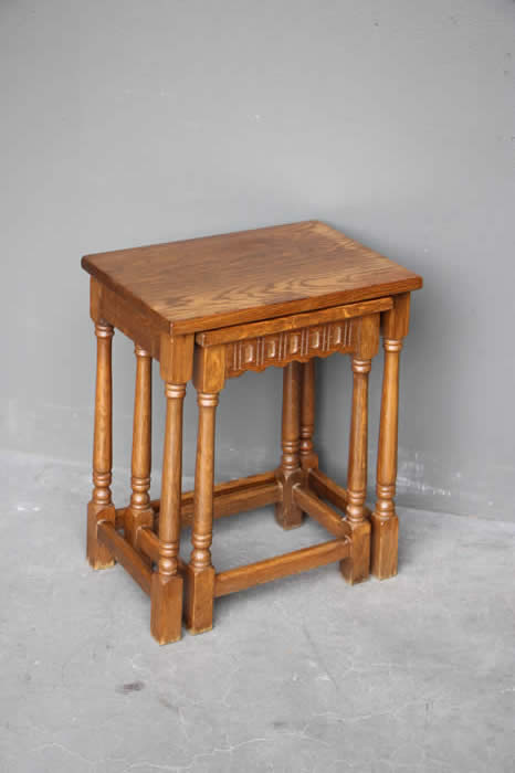Ideal as a centre table, or lamp table or even as a very bedside table. Made in solid american oak . Original patina polish. Some marks to surface consistent with age and use. Polished all round so it can stand in the centre of a room.
