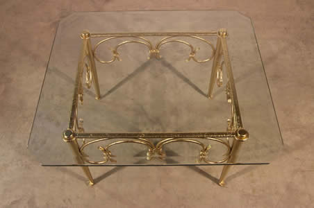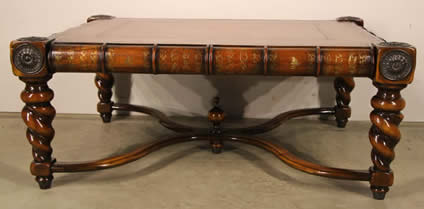 | Title Solid French oak top coffee table on carvedcolumns with platform base hand painted gilt patina 1960s | |