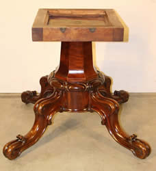 | Title Antique English walnut wine table raised on turned column ornate carved acanthus scroll legs 1860 | |