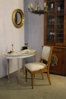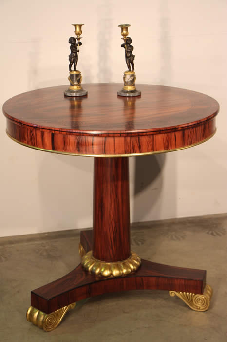 The English Regency period heavily influenced the continental late Empire and Biedermeier era and this elegant French table shows a superb simplicity of design. A value point is that this table has all its original polished finish.