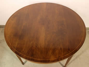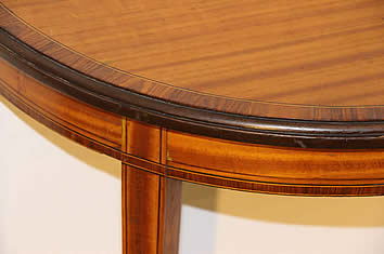 Description Sutherland table 4890 Antique English satinwood oval Sutherland centre table with drop sides and butterfly hinge support legs 1860
