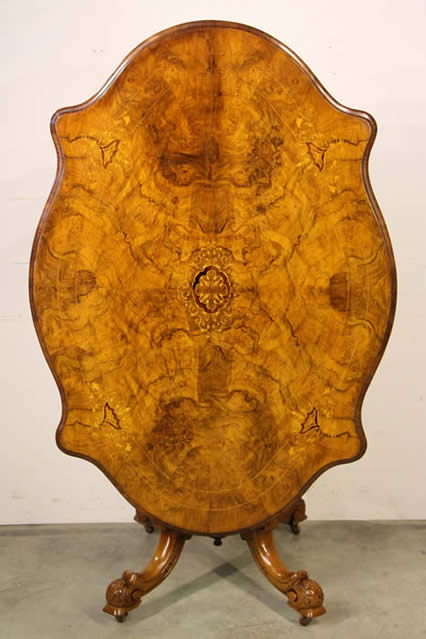 | Title Rare Swiss Alps Chalet wine table with superb marquetry inlay and ornate carved walnut structure 1880's | |
