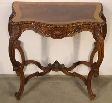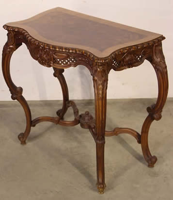 | Title French walnut carved occasional table with shaped top on cabriole legs | |