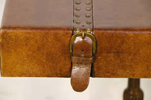 Original brass support hinge allows lid to stay open. Original lock and working steel key supplied.
