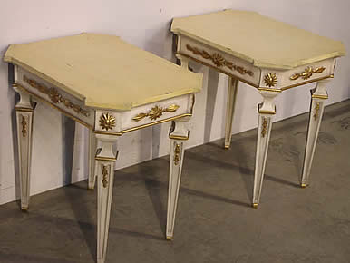 | Title Pair neoclassical painted fruitwood and marble top lamp tables bedsides with fitted single drawer | |