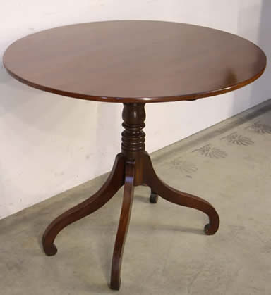 | Title Antique mahogany top wine table raised on Georgian turned column with birdcage base support | |