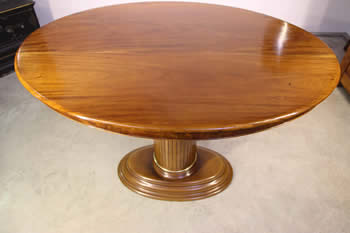| Title Vintage Regency mahogany round centre table on carved reeded column to platform base on scroll feet | |