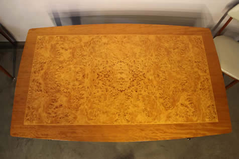 Ideal as use for a games table, supper or even as a desk. Polished all round to stand in the centre of a room.. Beautiful quality craftsmanship with superb selection of satin birch veneers that glows in the grain.