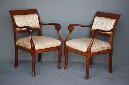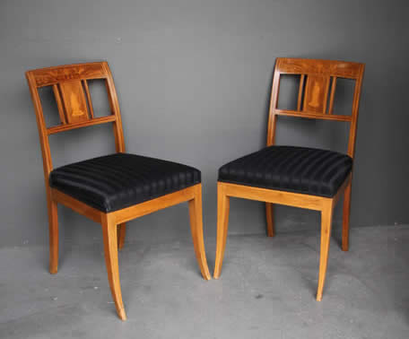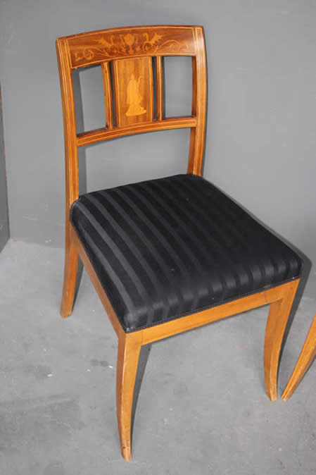 in the Empire Biedermeier manner with satinwood string inlay. The drop on seats