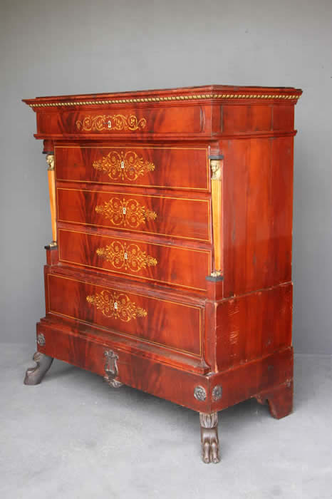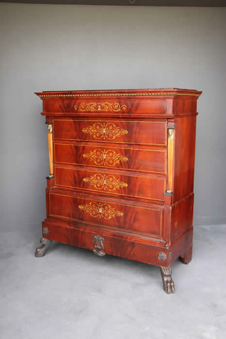 Antique Gustavian Swedish 18th century chest of drawers in mahogany with brass mounts & inlay Stockholm circa 1780