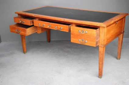 Large French Empire blonde cherrywood desk with brass handles working locks extension slides circa 1835.