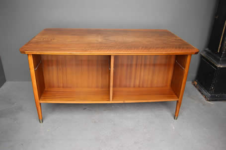 Beautifully polished walnut top with curved front and arched back with that much sought after proportion for mid century aesthetics.