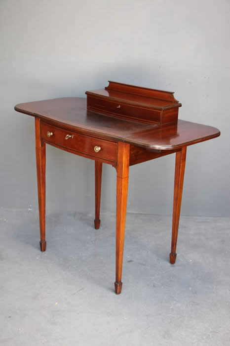 Title   Edwardian ladies desk satinwood inlaid mahogany drop side table by Buckley & Nunn London 1905