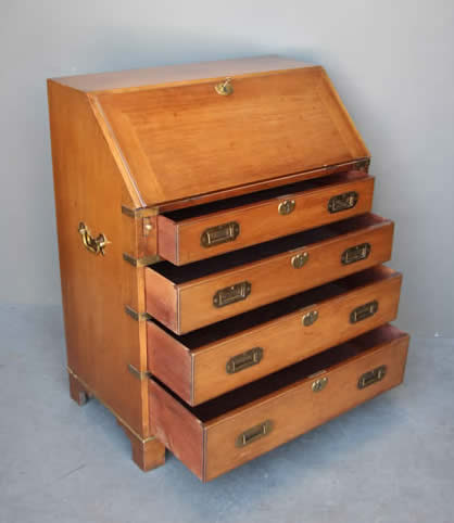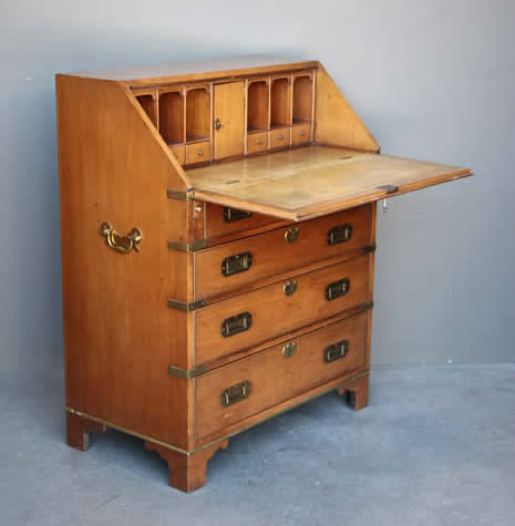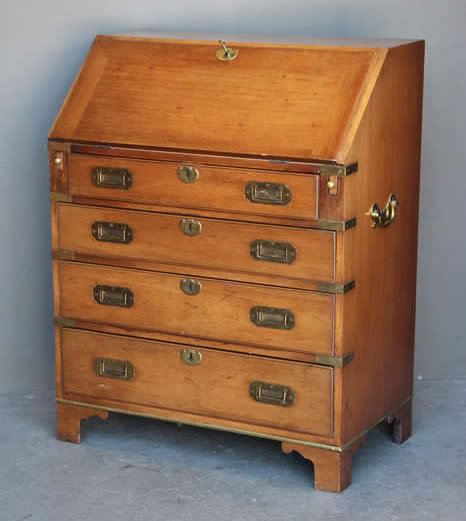 Impressive Captains campaign desk in mahogany with brass handles |